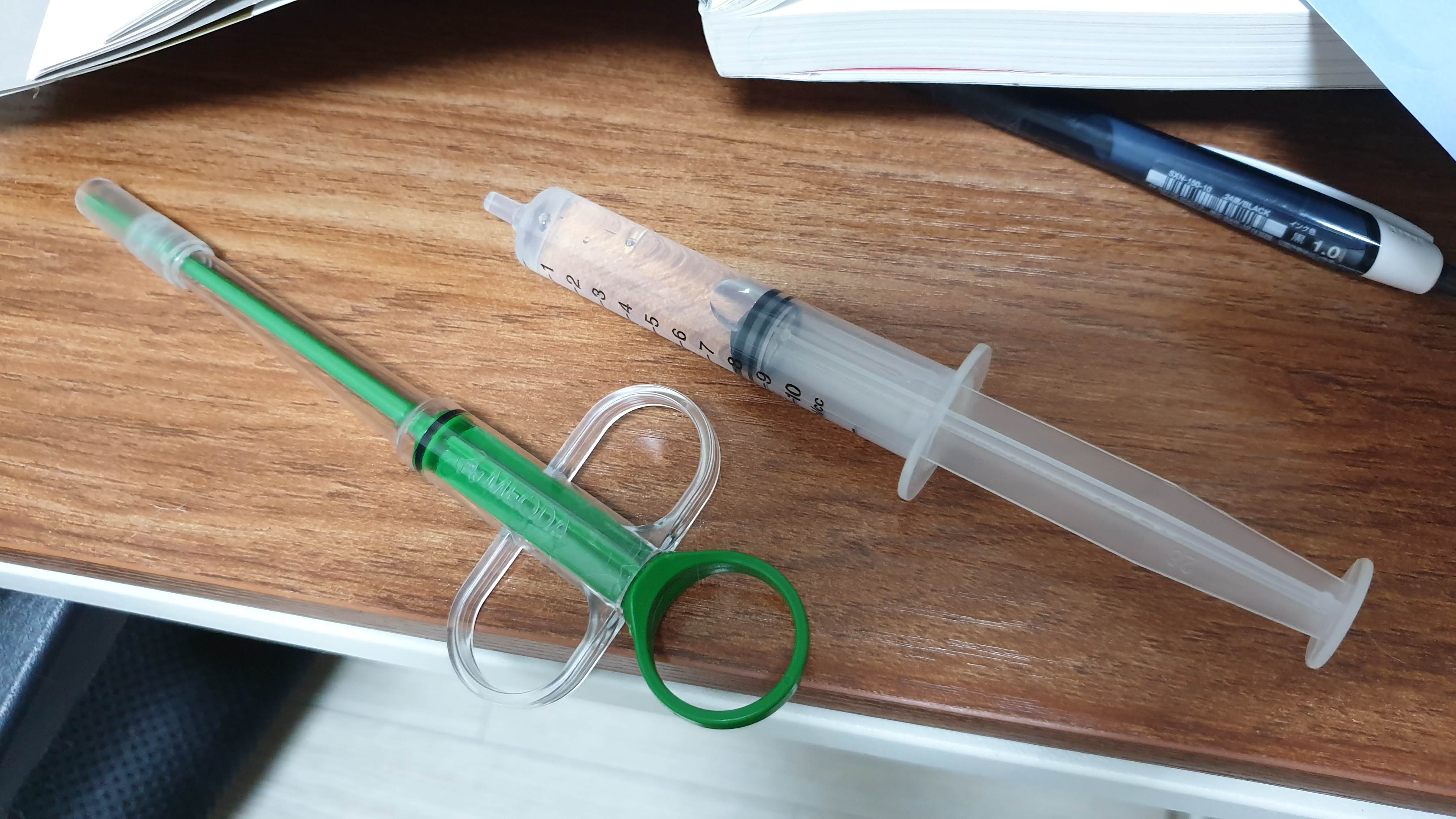 주사기로 손을 바꾸는 사이에 토하거나 뱉어버리거나
